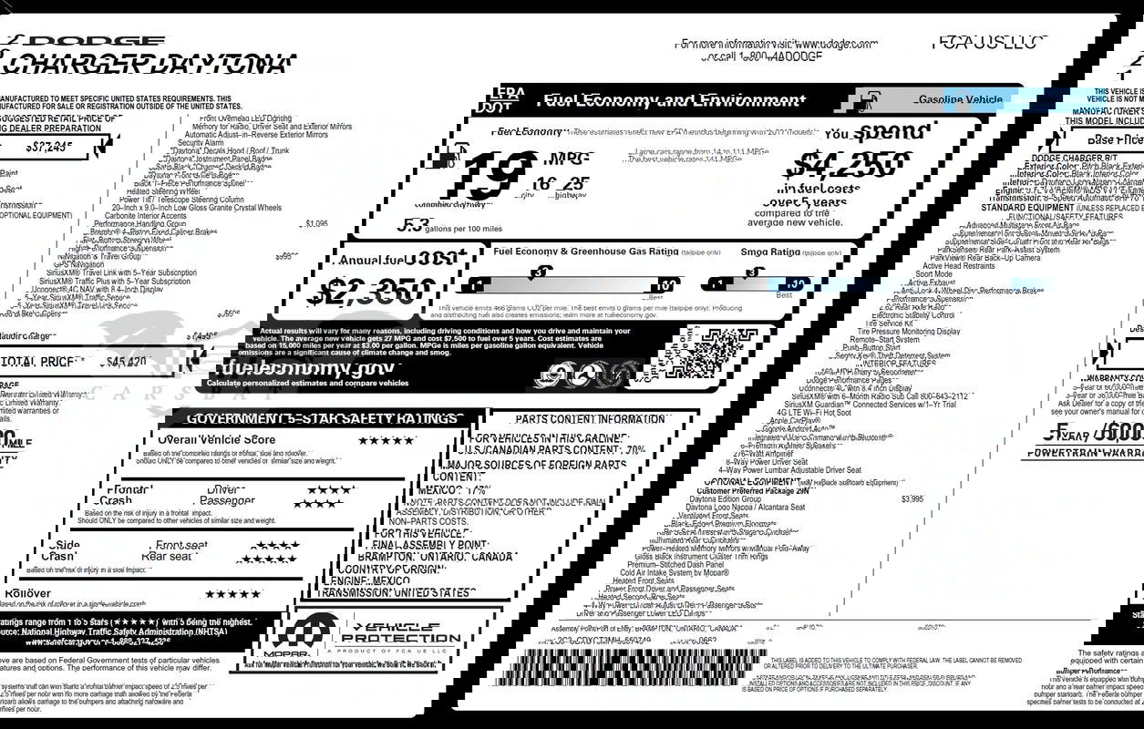 Średnia cena Dodge Charger 2021 z przebiegiem 50000-75000 km
