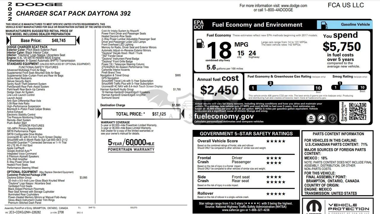 • VIN: 2C3CDXGJ2NH226282