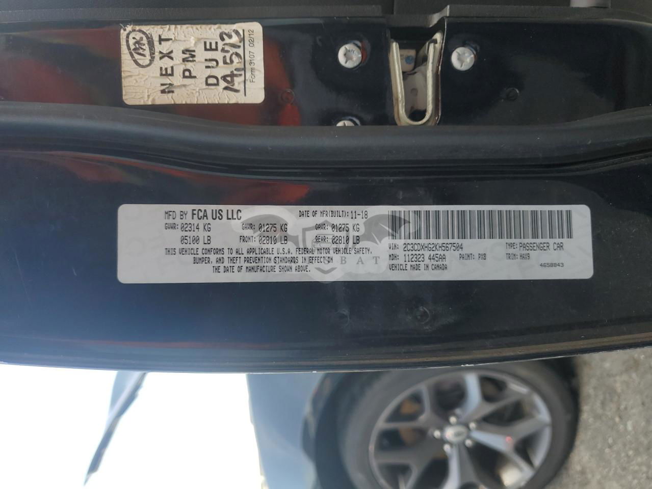 • VIN: 2C3CDXHG2KH567504
