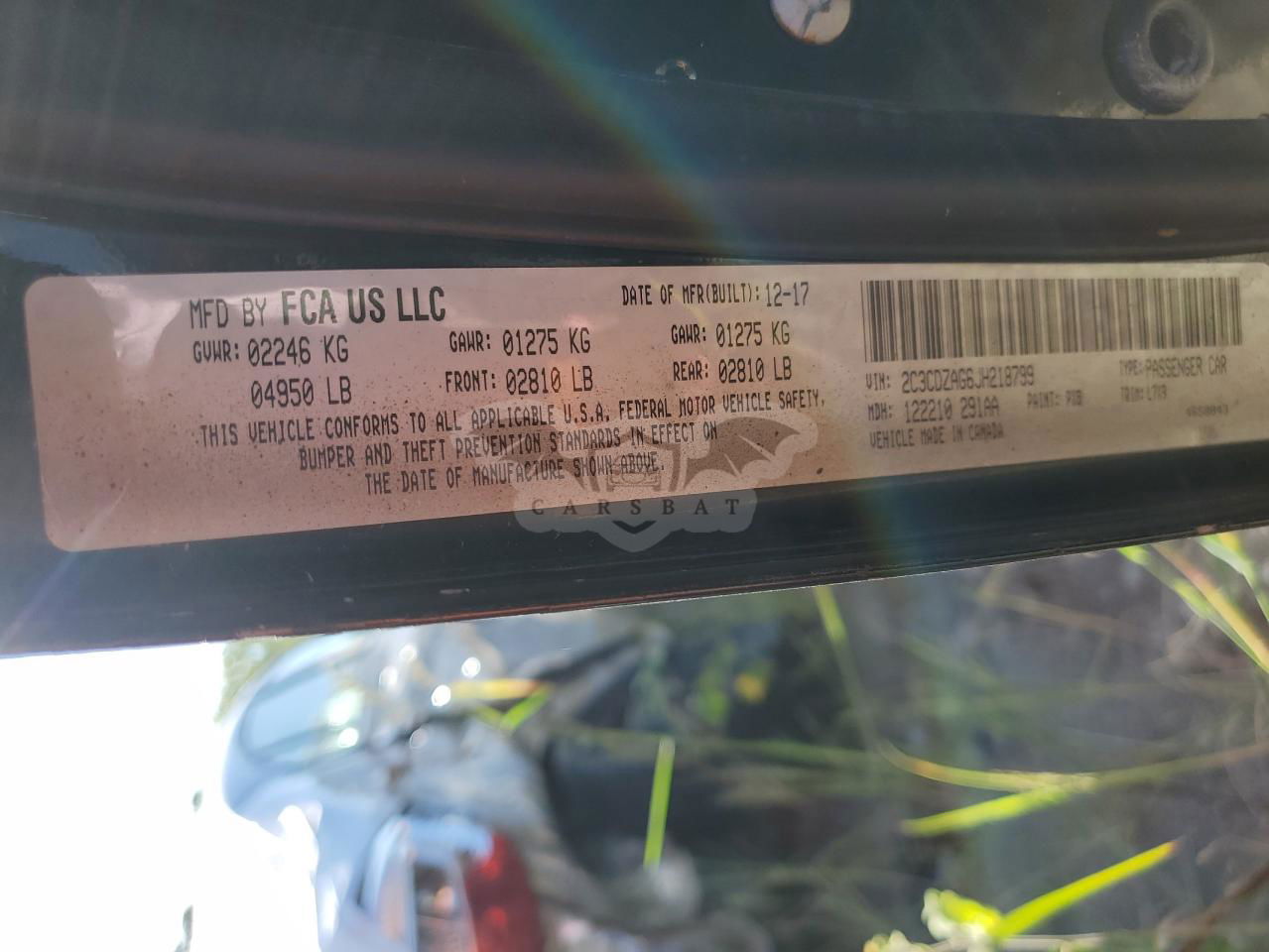 • VIN: 2C3CDZAG6JH218799