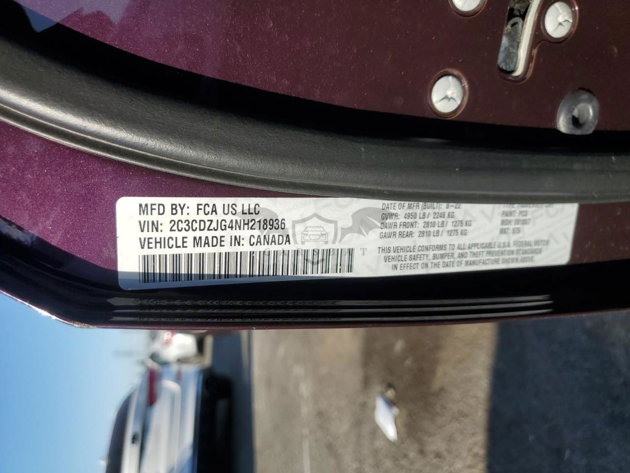 • VIN: 2C3CDZJG4NH218936