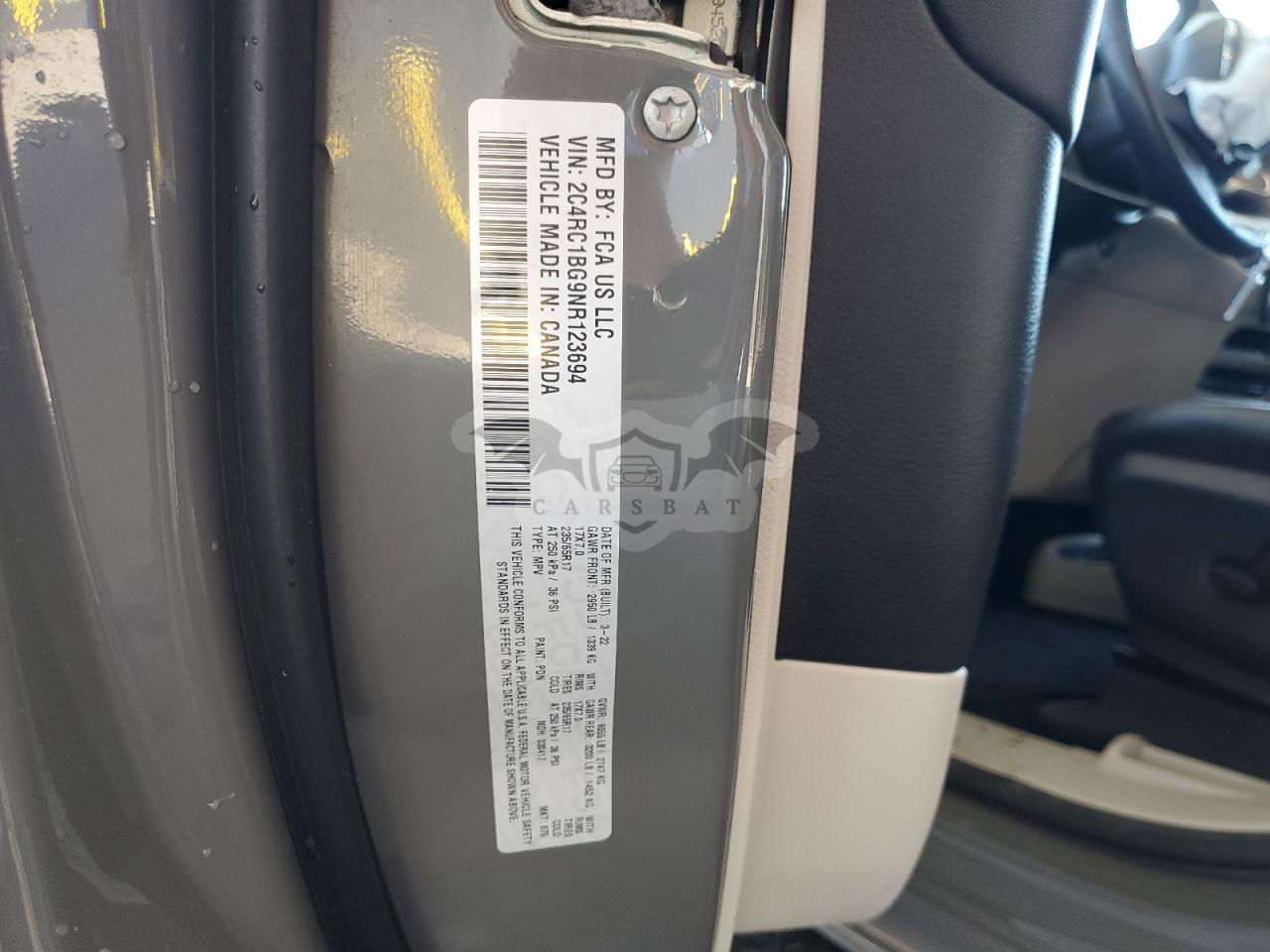 • VIN: 2C4RC1BG9NR123694