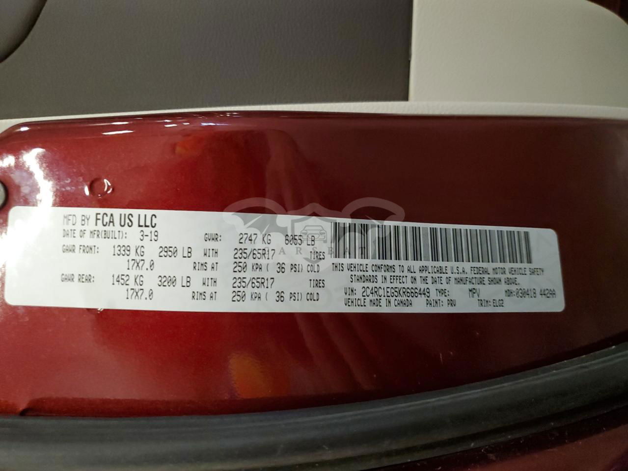 • VIN: 2C4RC1EG5KR666449