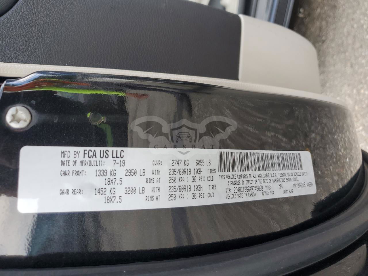 • VIN: 2C4RC1GG6KR745898