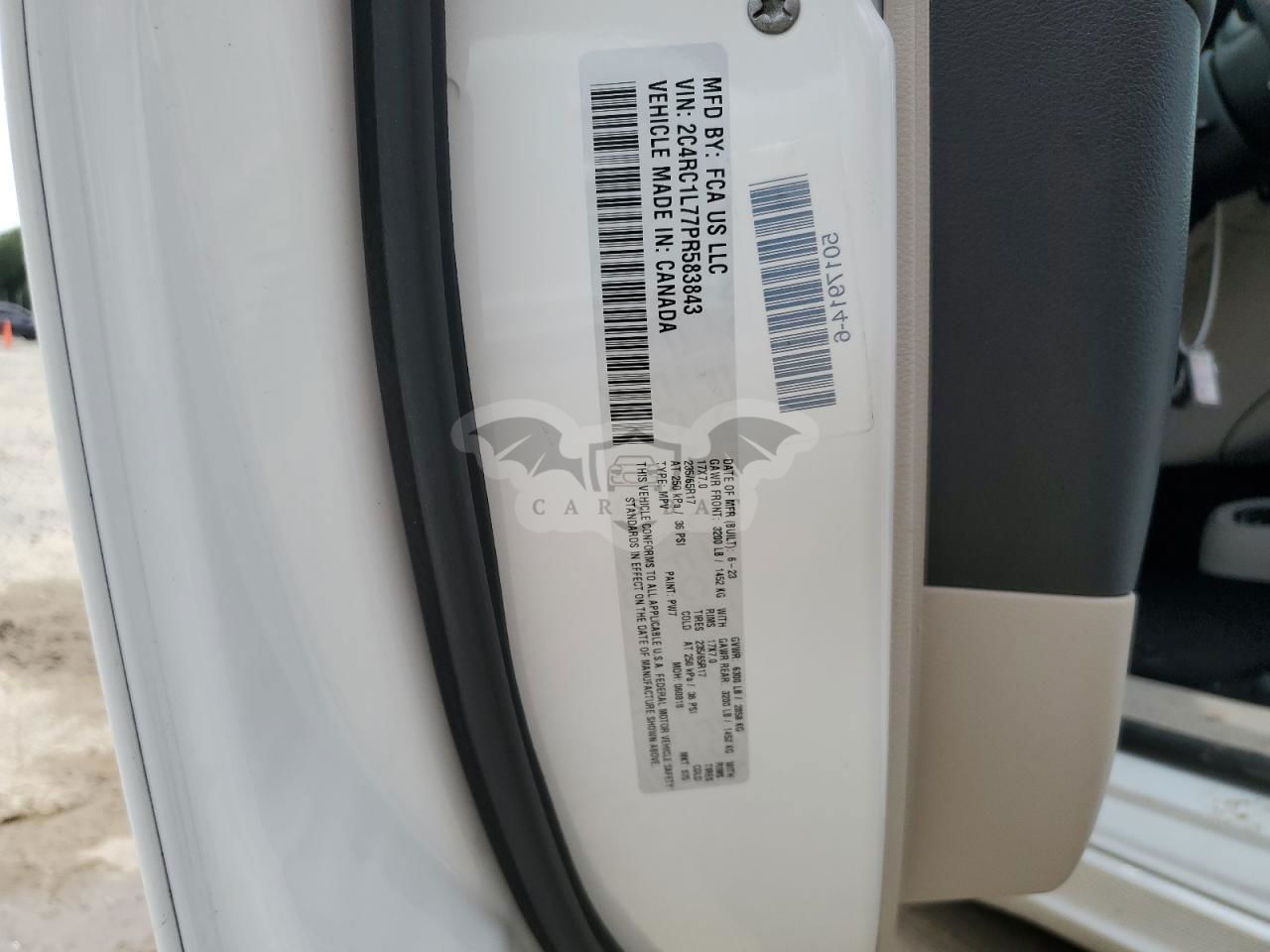 • VIN: 2C4RC1L77PR583843