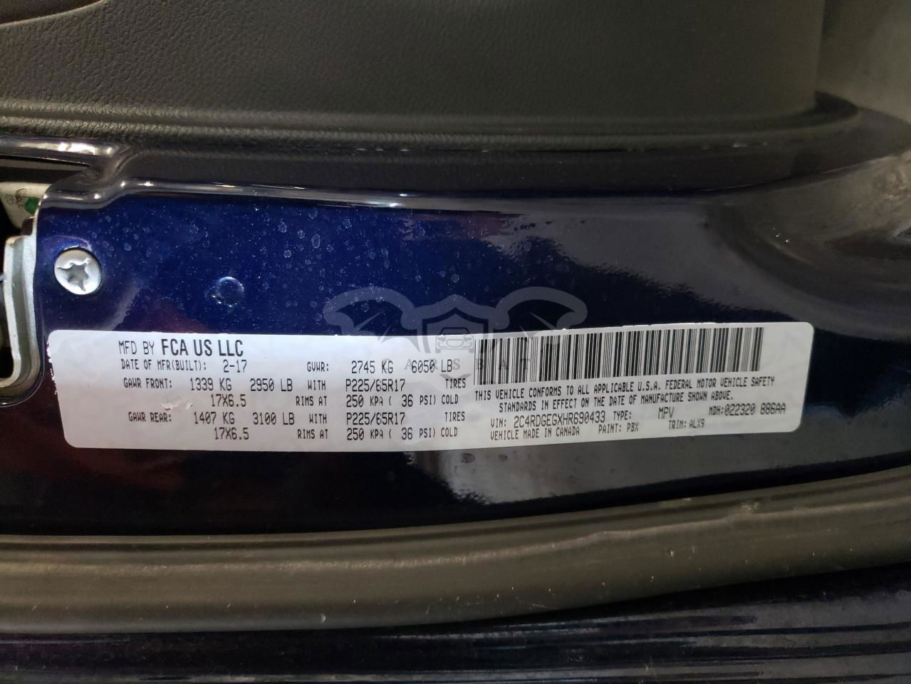 • VIN: 2C4RDGEGXHR690433