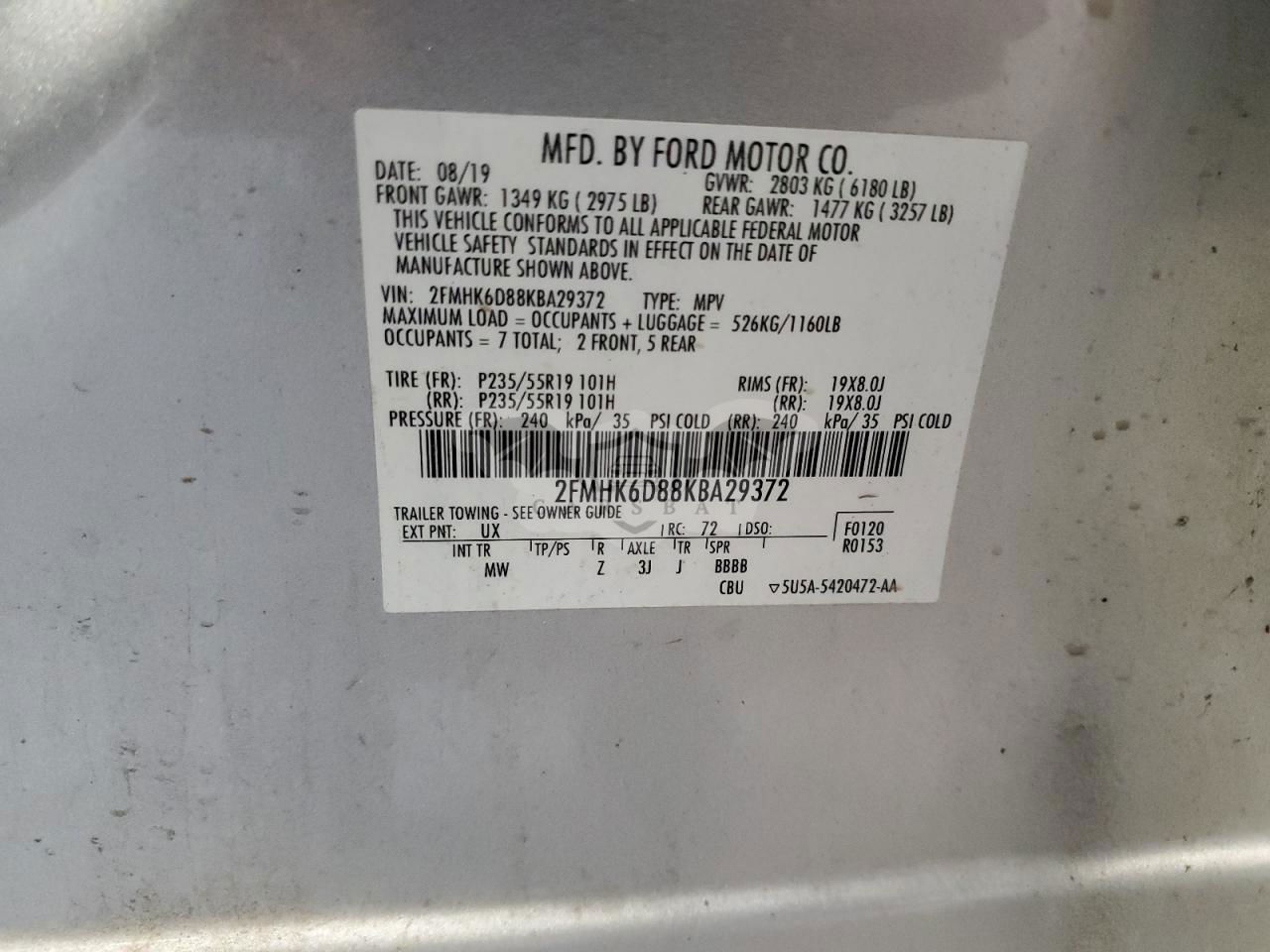 • VIN: 2FMHK6D88KBA29372