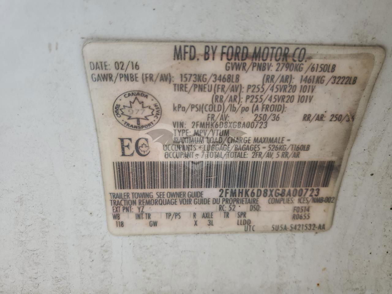 • VIN: 2FMHK6D8XGBA00723