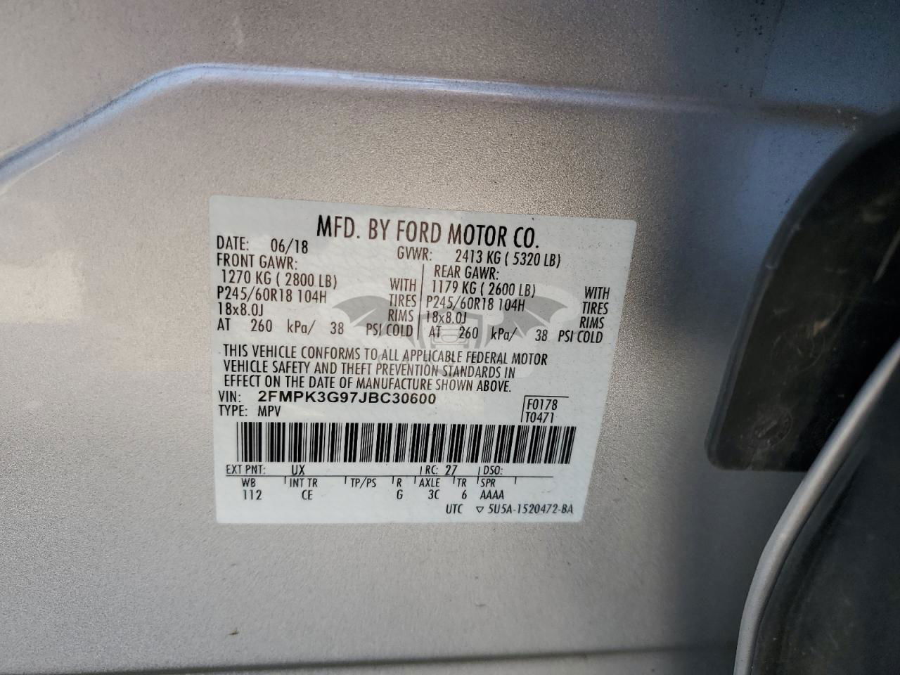• VIN: 2FMPK3G97JBC30600