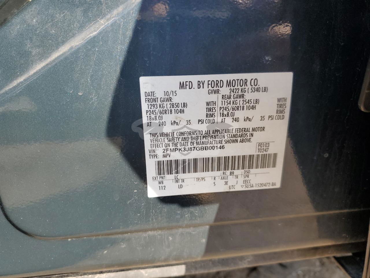 • VIN: 2FMPK3J87GBB00146