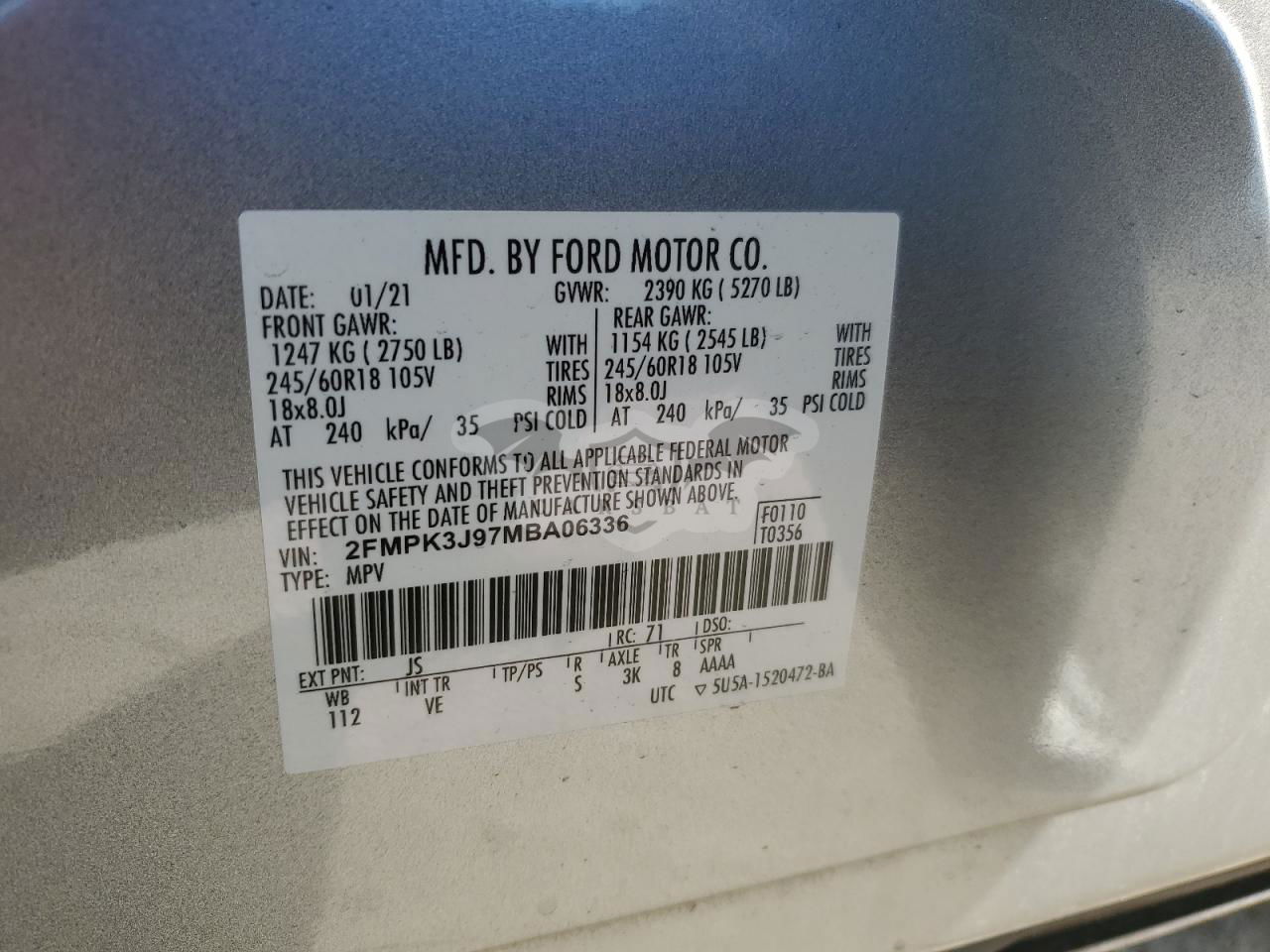 • VIN: 2FMPK3J97MBA06336