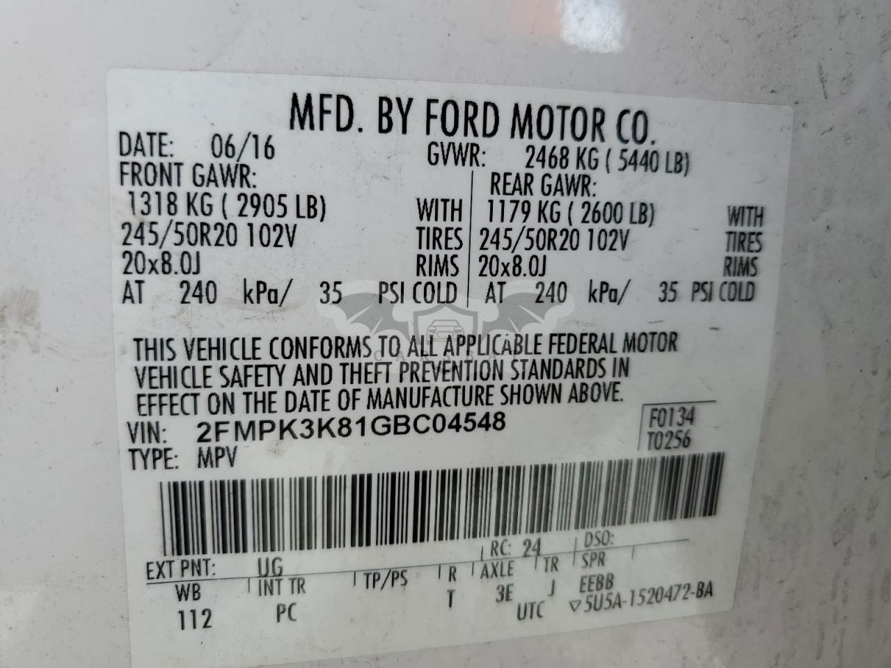 • VIN: 2FMPK3K81GBC04548