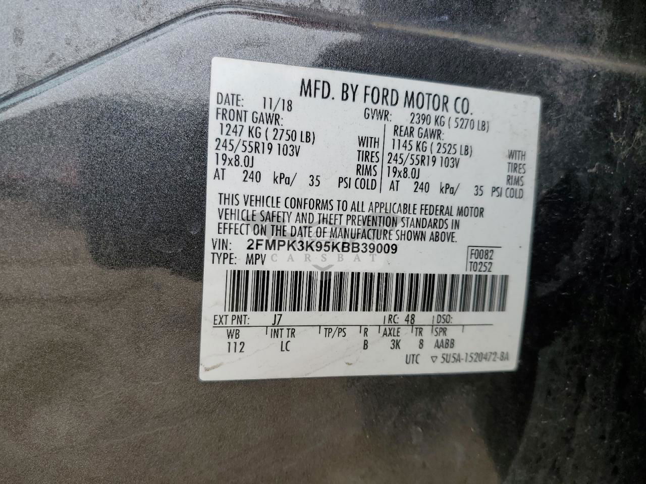 • VIN: 2FMPK3K95KBB39009