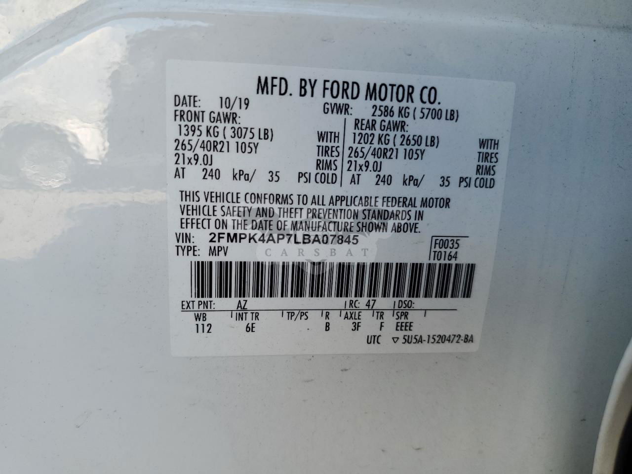 • VIN: 2FMPK4AP7LBA07845