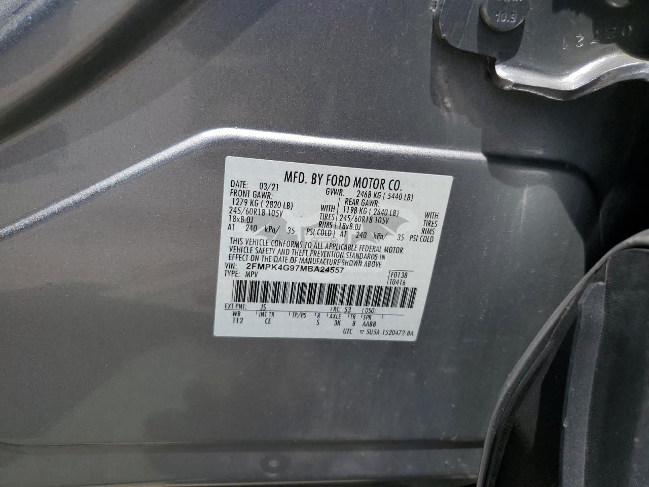 • VIN: 2FMPK4G97MBA24557