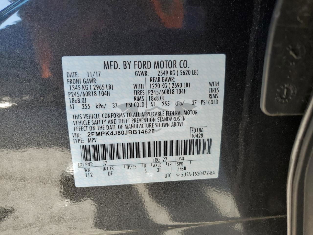 • VIN: 2FMPK4J80JBB14628
