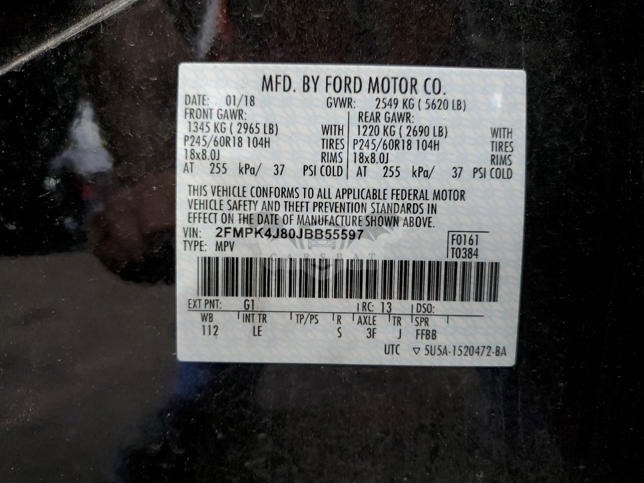 • VIN: 2FMPK4J80JBB55597