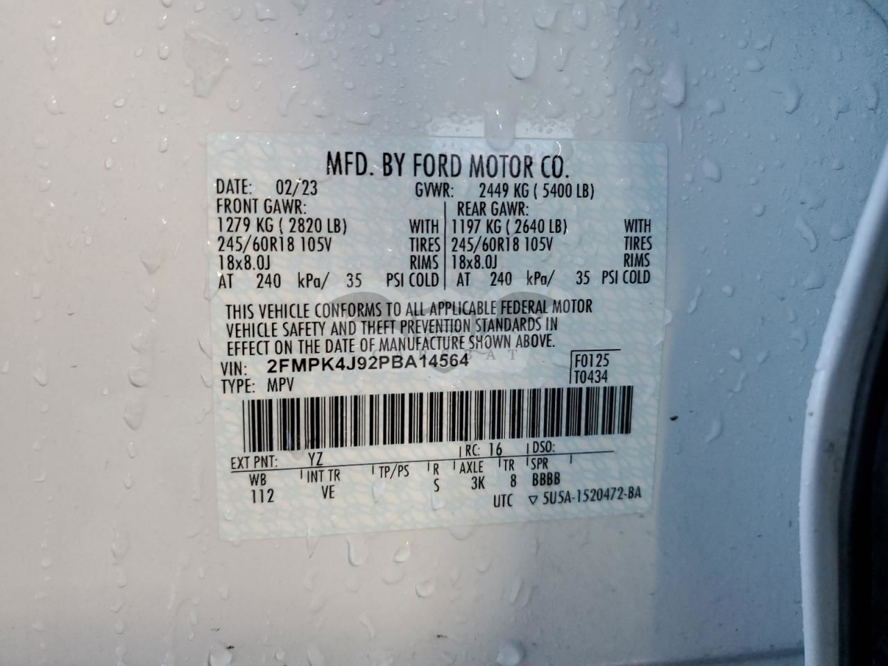 • VIN: 2FMPK4J92PBA14564