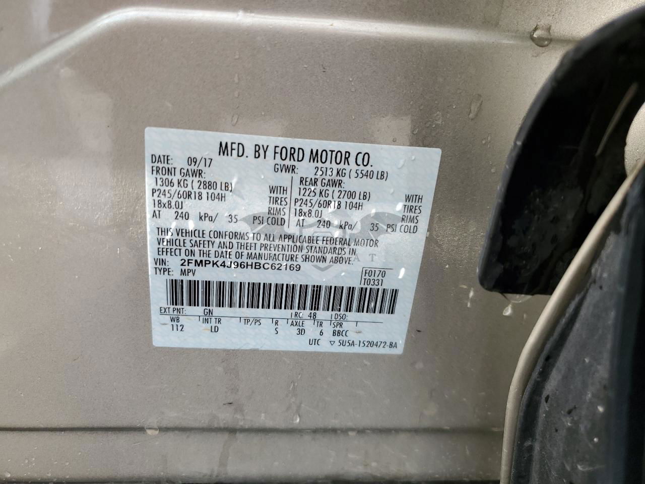 • VIN: 2FMPK4J96HBC62169