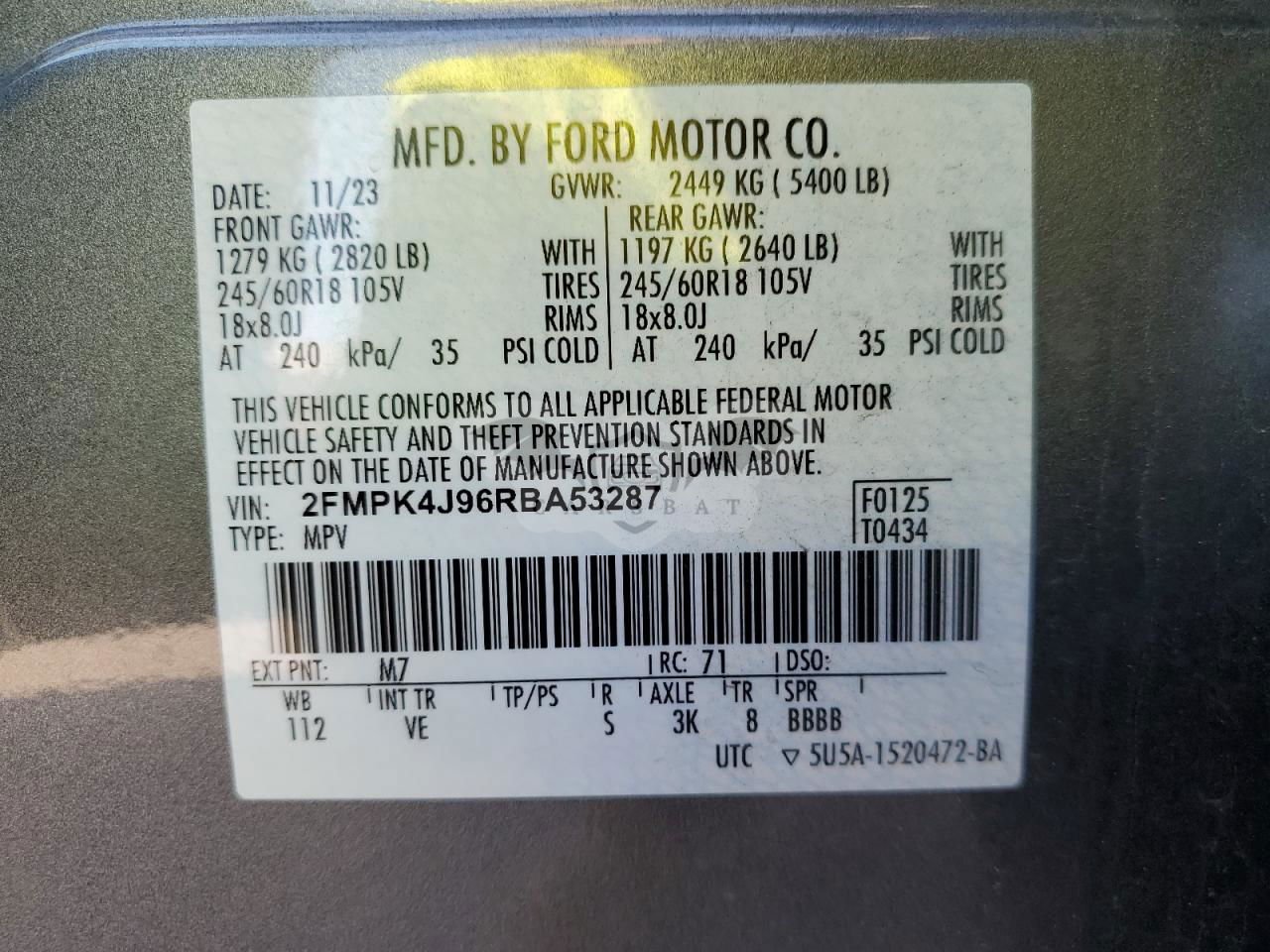 • VIN: 2FMPK4J96RBA53287