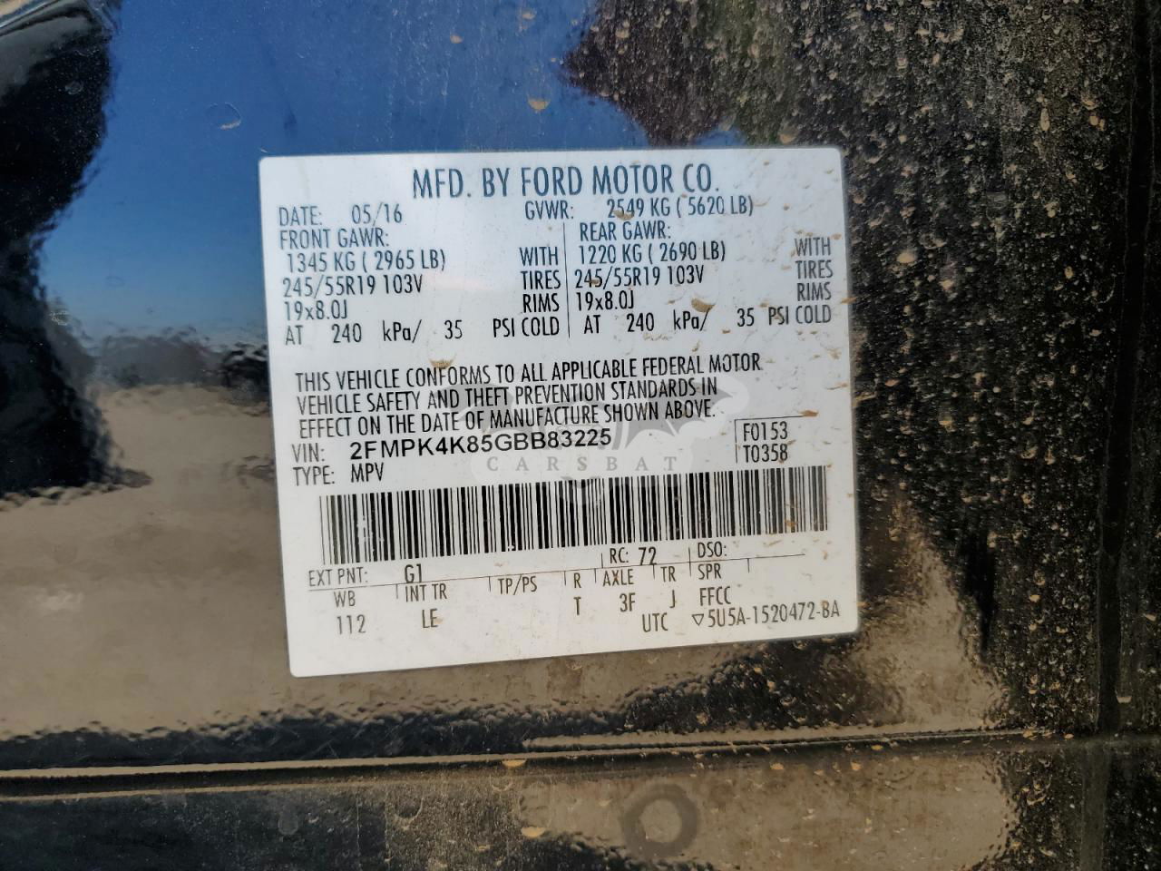 • VIN: 2FMPK4K85GBB83225