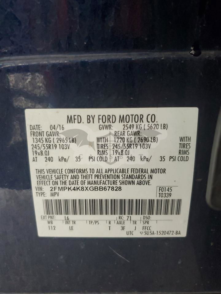 • VIN: 2FMPK4K8XGBB67828