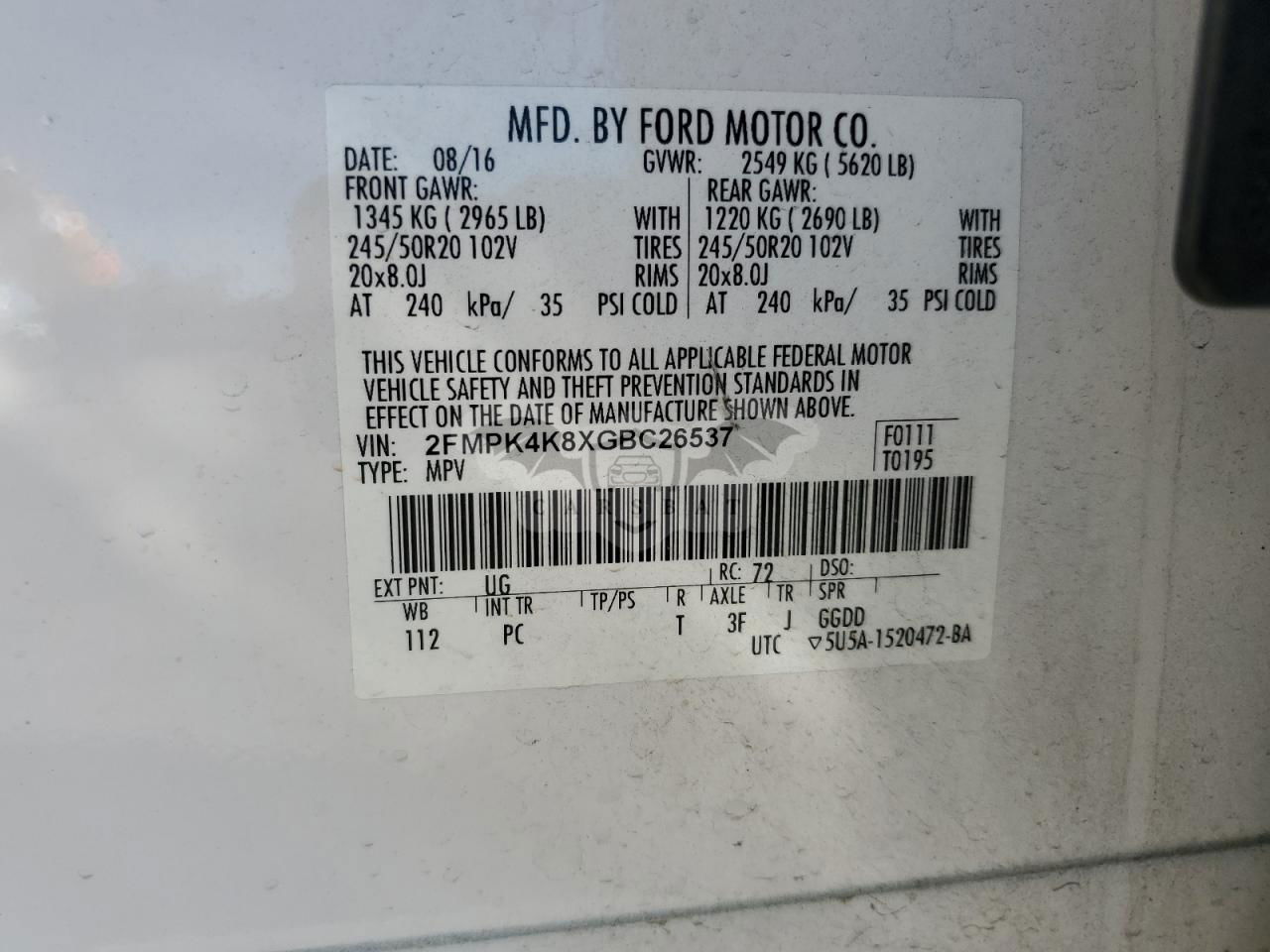 • VIN: 2FMPK4K8XGBC26537