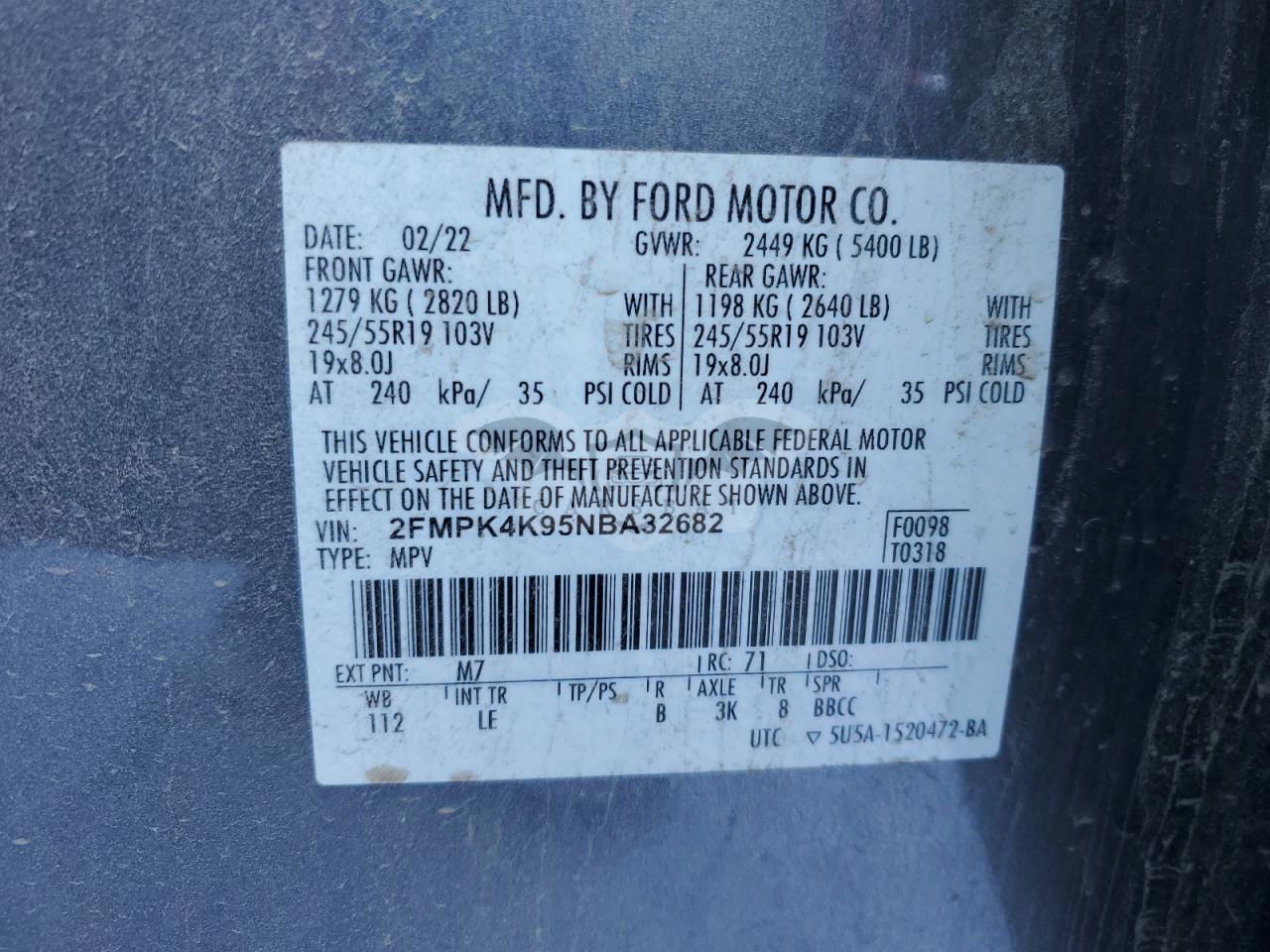 • VIN: 2FMPK4K95NBA32682