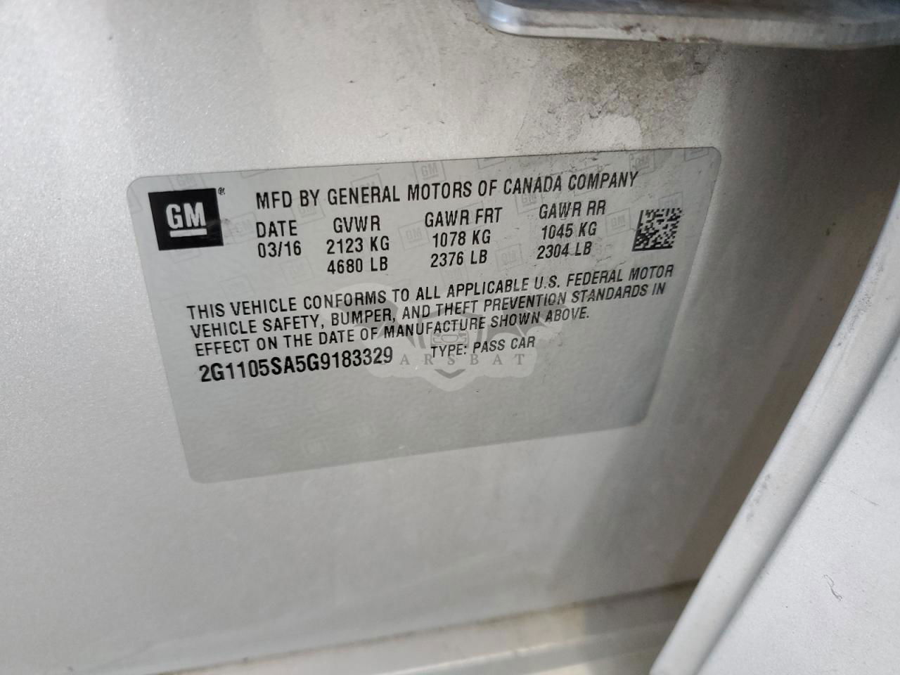 • VIN: 2G1105SA5G9183329