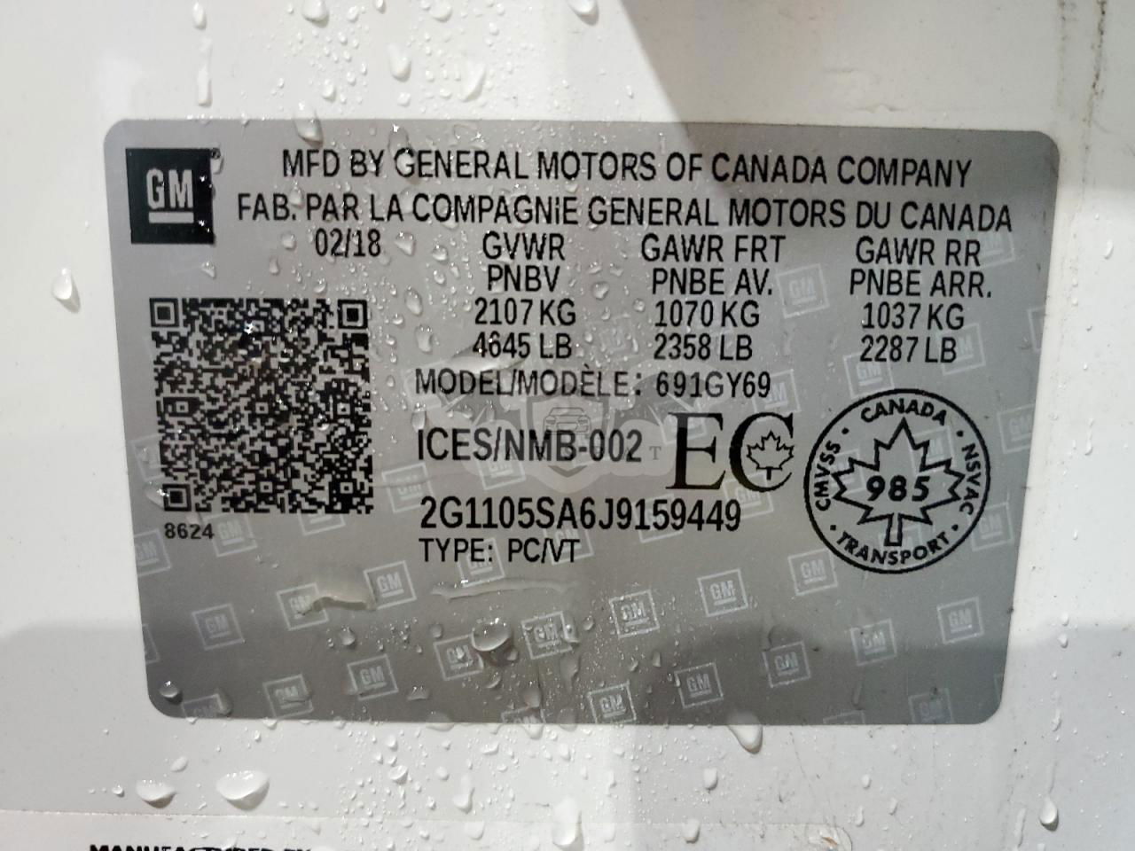 • VIN: 2G1105SA6J9159449
