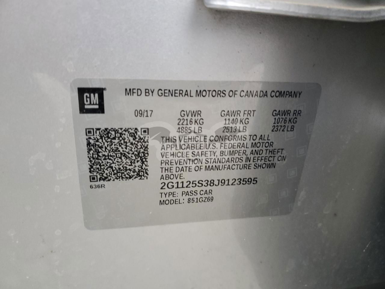 • VIN: 2G1125S38J9123595
