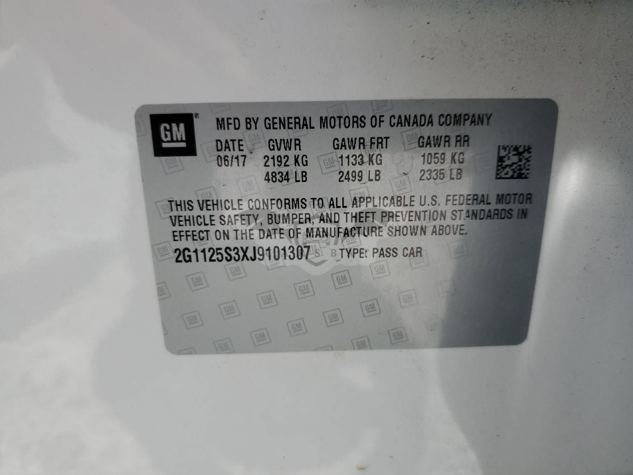 • VIN: 2G1125S3XJ9101307