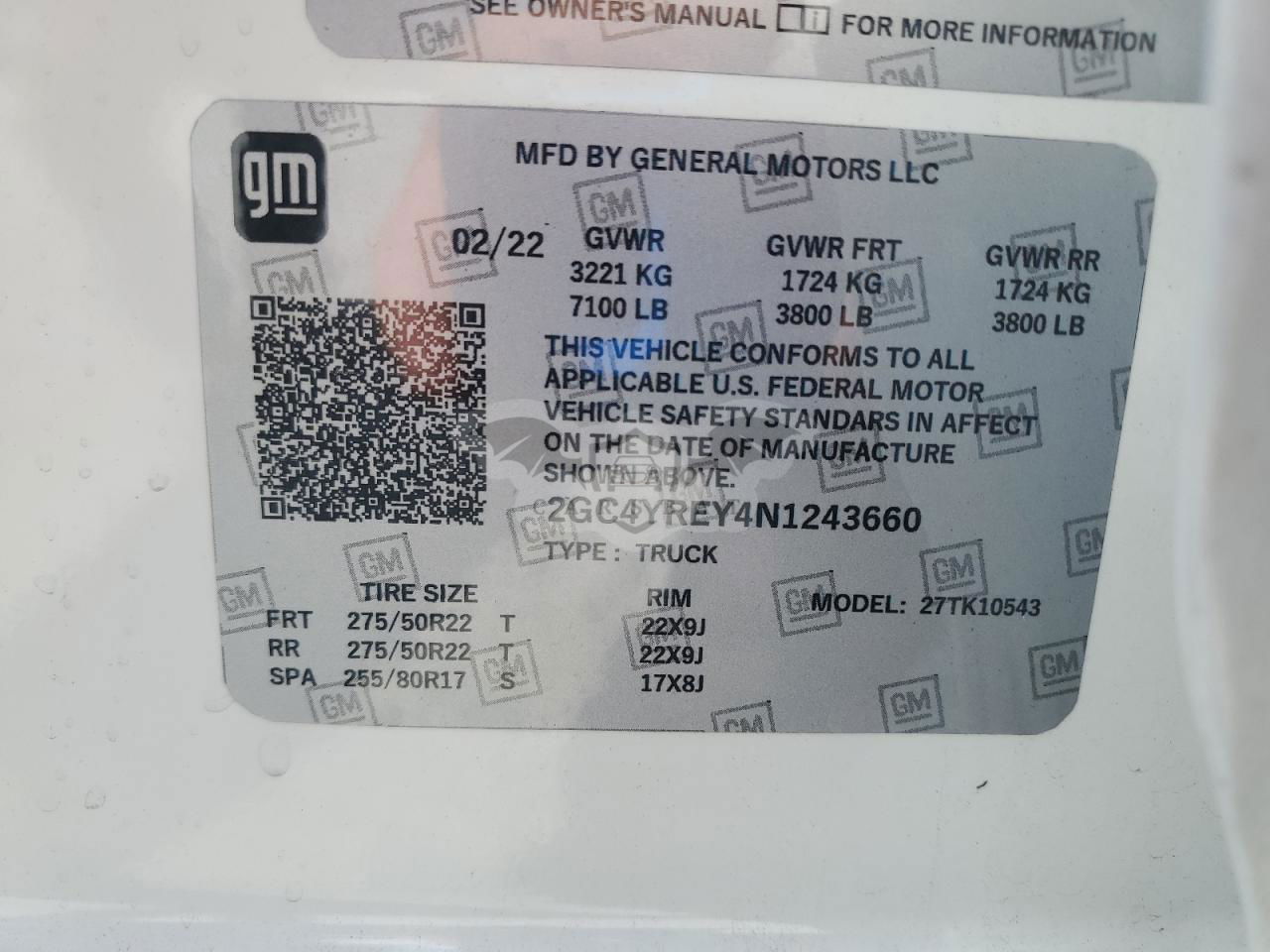 • VIN: 2GC4YREY6N1224575