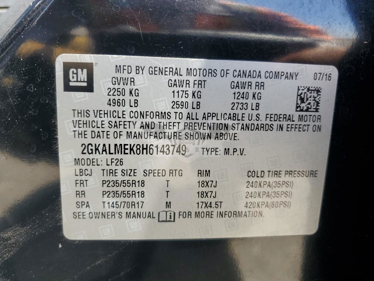 • VIN: 2GKALMEK8H6143749