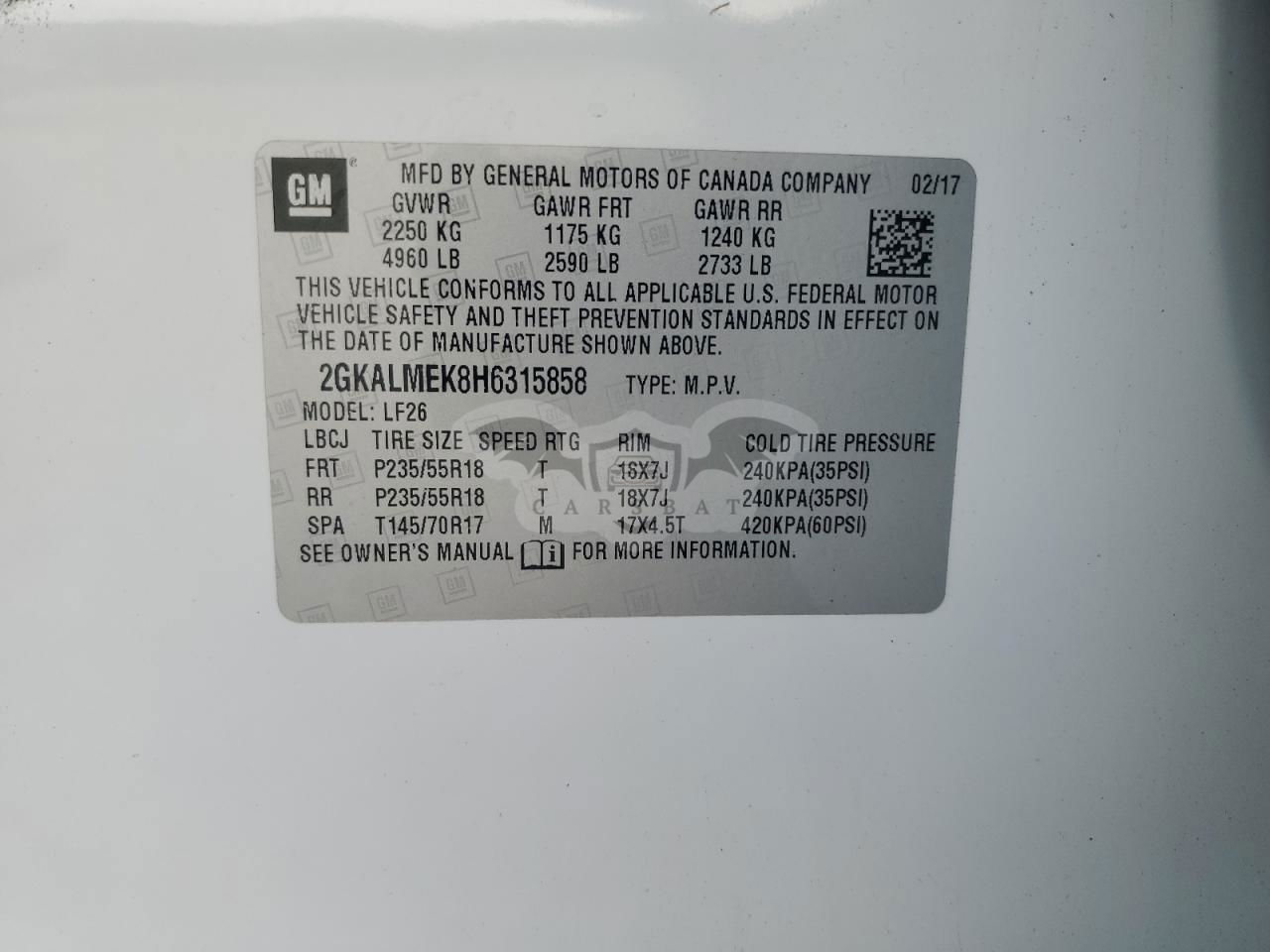 • VIN: 2GKALMEK8H6315858