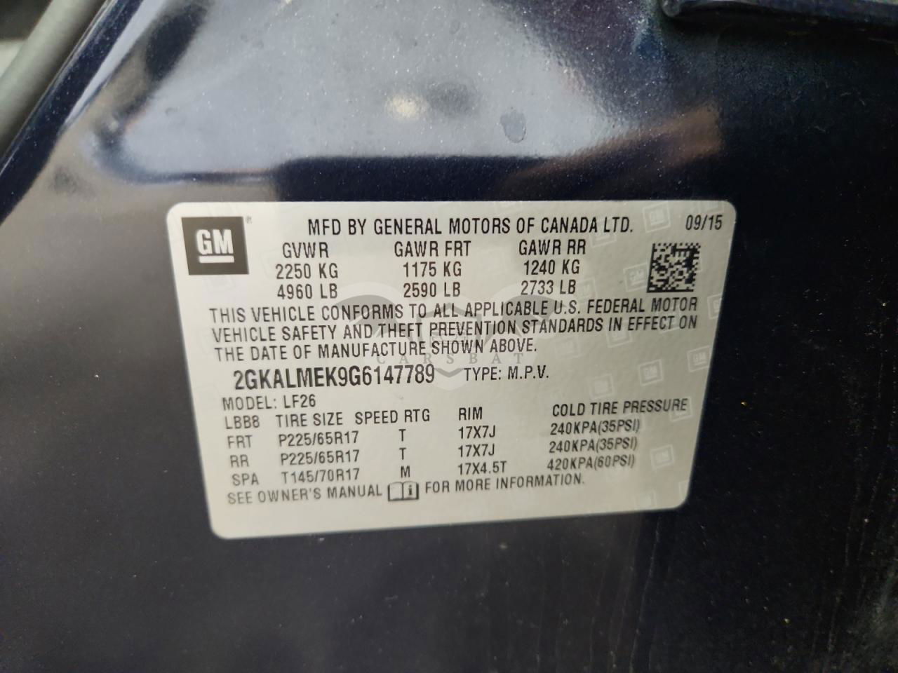 • VIN: 2GKALMEK9G6147789
