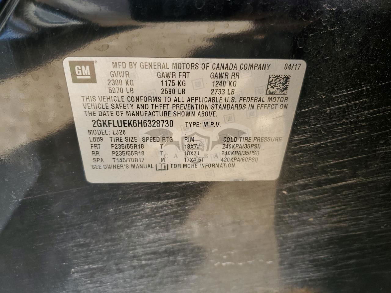 • VIN: 2GKFLUEK6H6328730