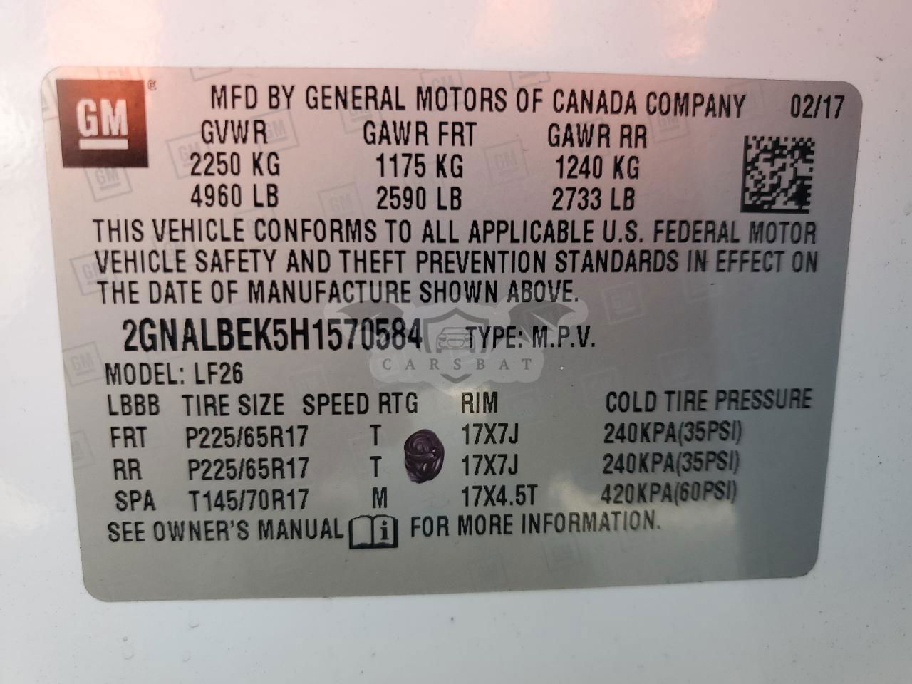 • VIN: 2GNALBEK5H1570584