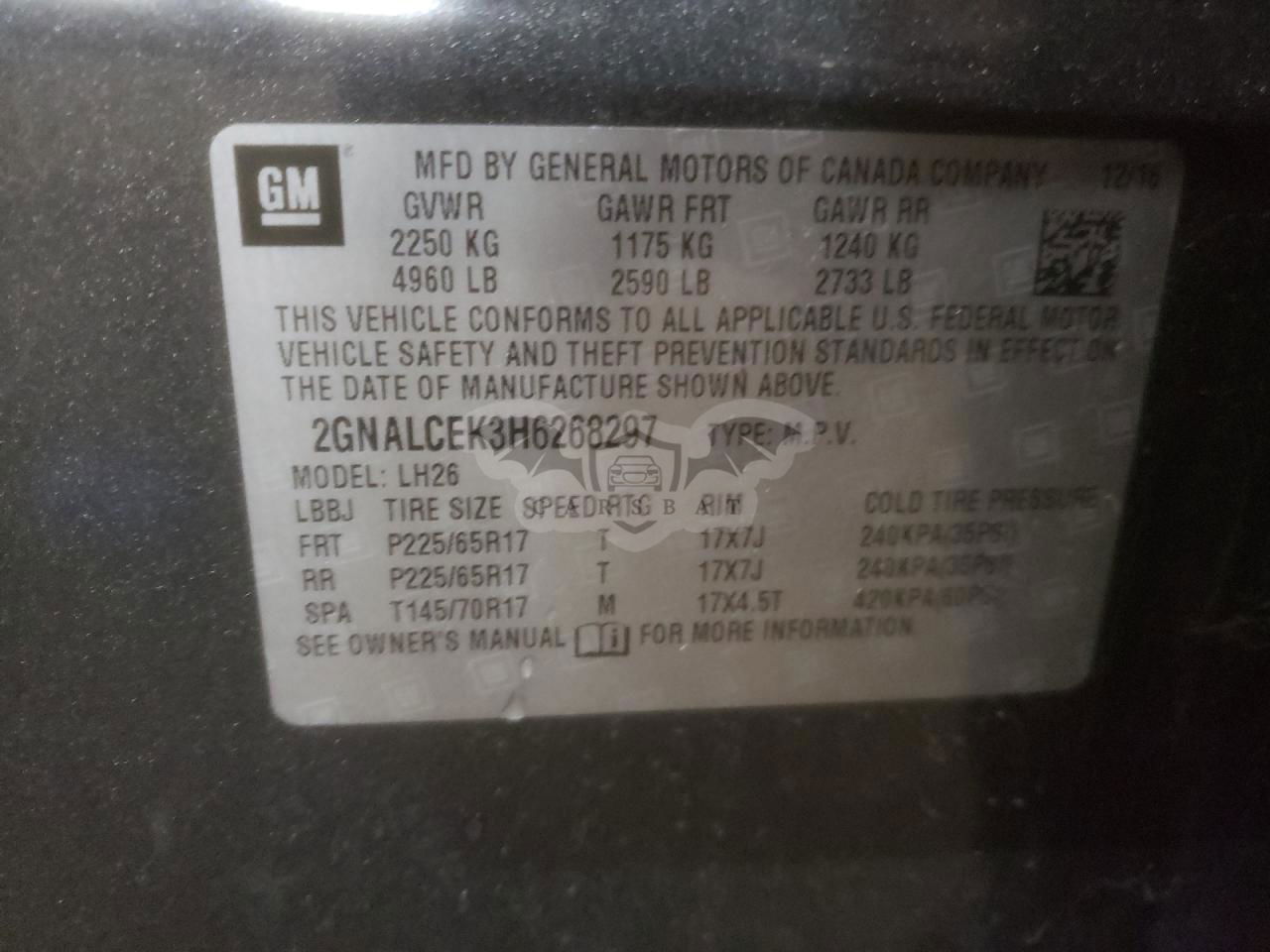• VIN: 2GNALCEK3H6268297