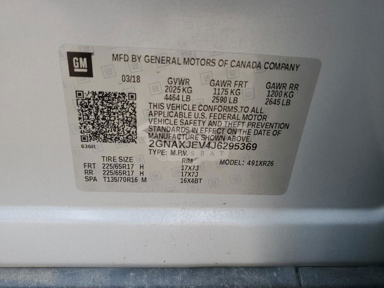 • VIN: 2GNAXJEV4J6295369