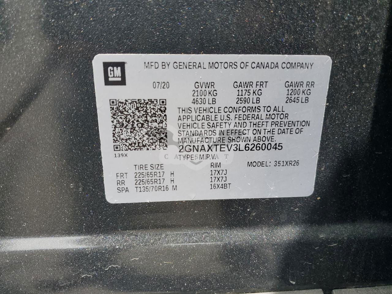 • VIN: 2GNAXTEV3L6260045