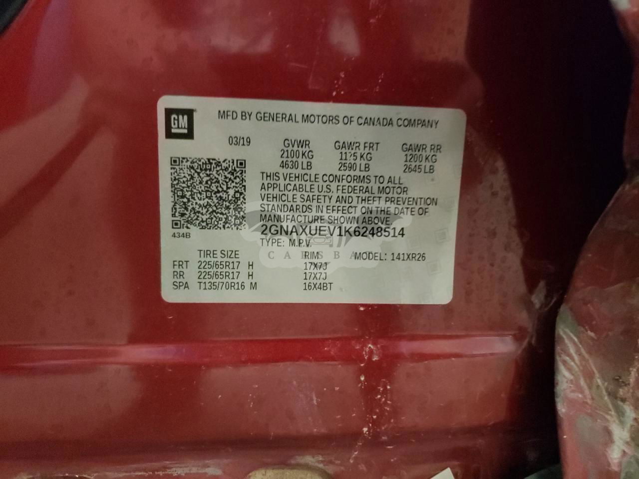• VIN: 2GNAXUEV1K6248514
