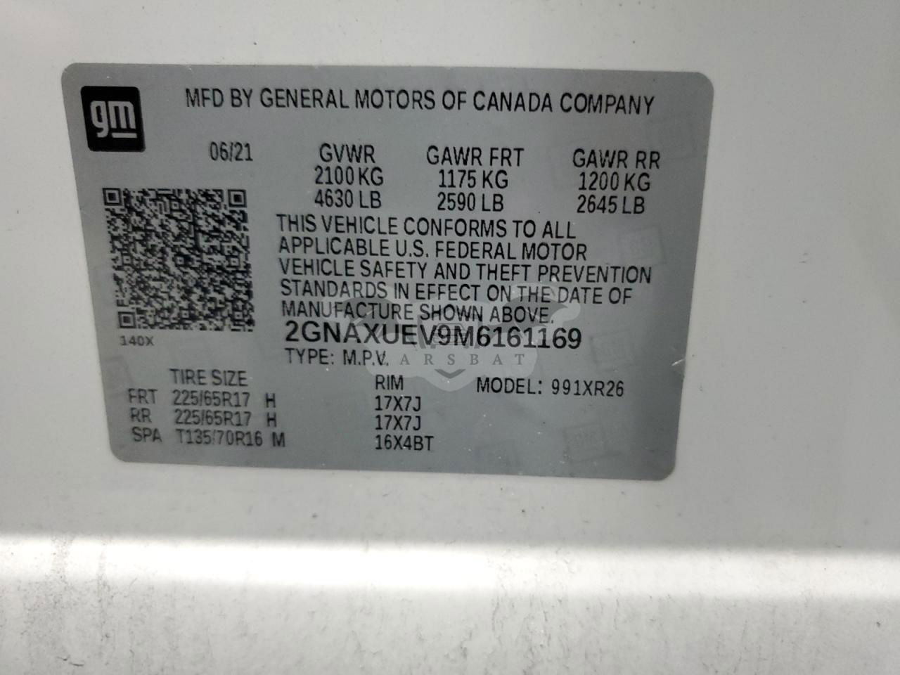 • VIN: 2GNAXUEV9M6161169