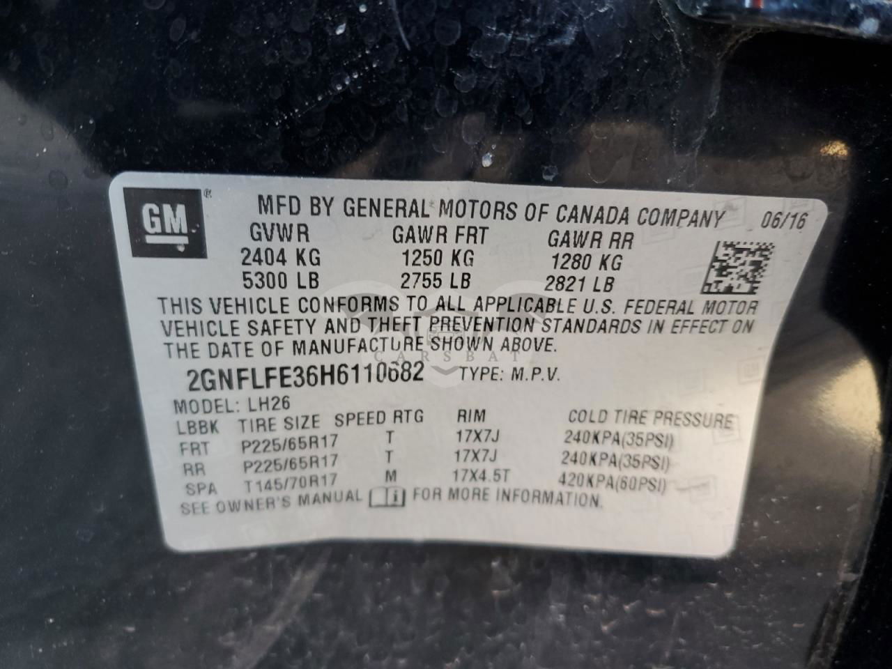 • VIN: 2GNFLFE36H6110682
