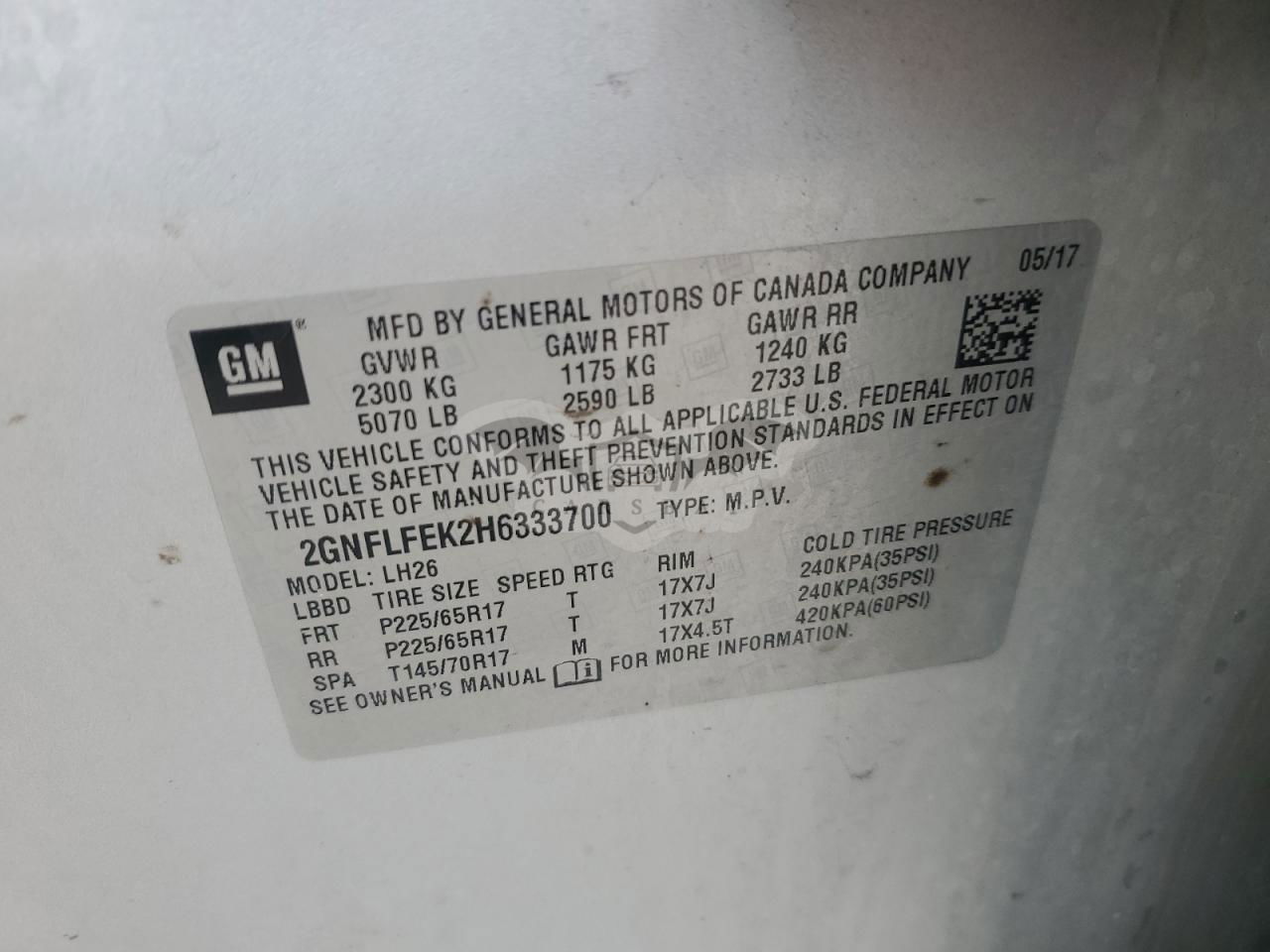 • VIN: 2GNFLFEK2H6333700