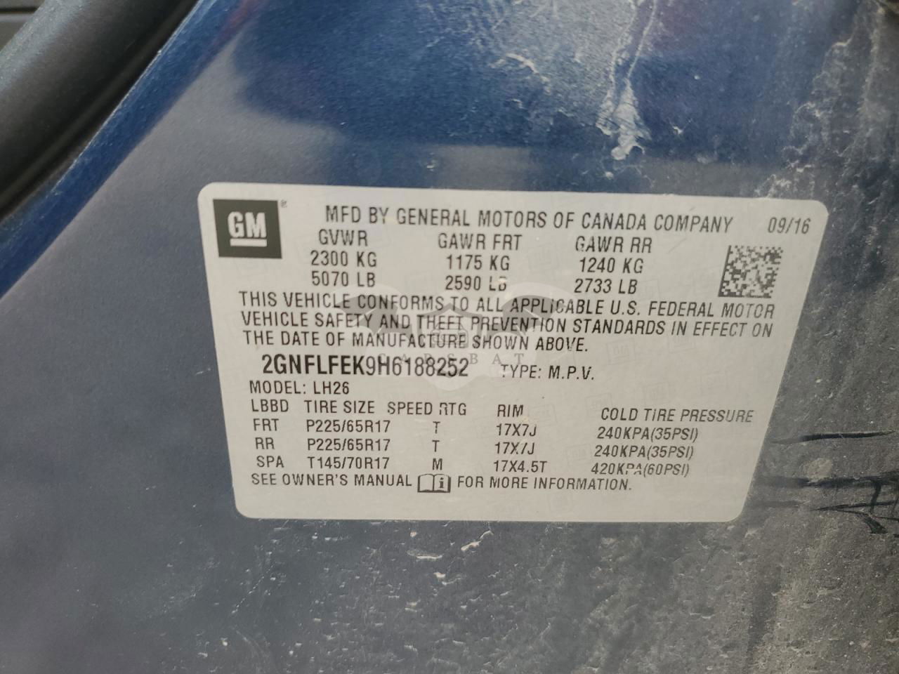 • VIN: 2GNFLFEK9H6188252