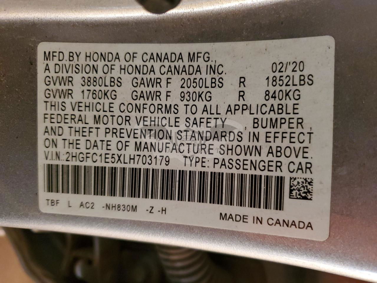 • VIN: 2HGFC1E5XLH703179