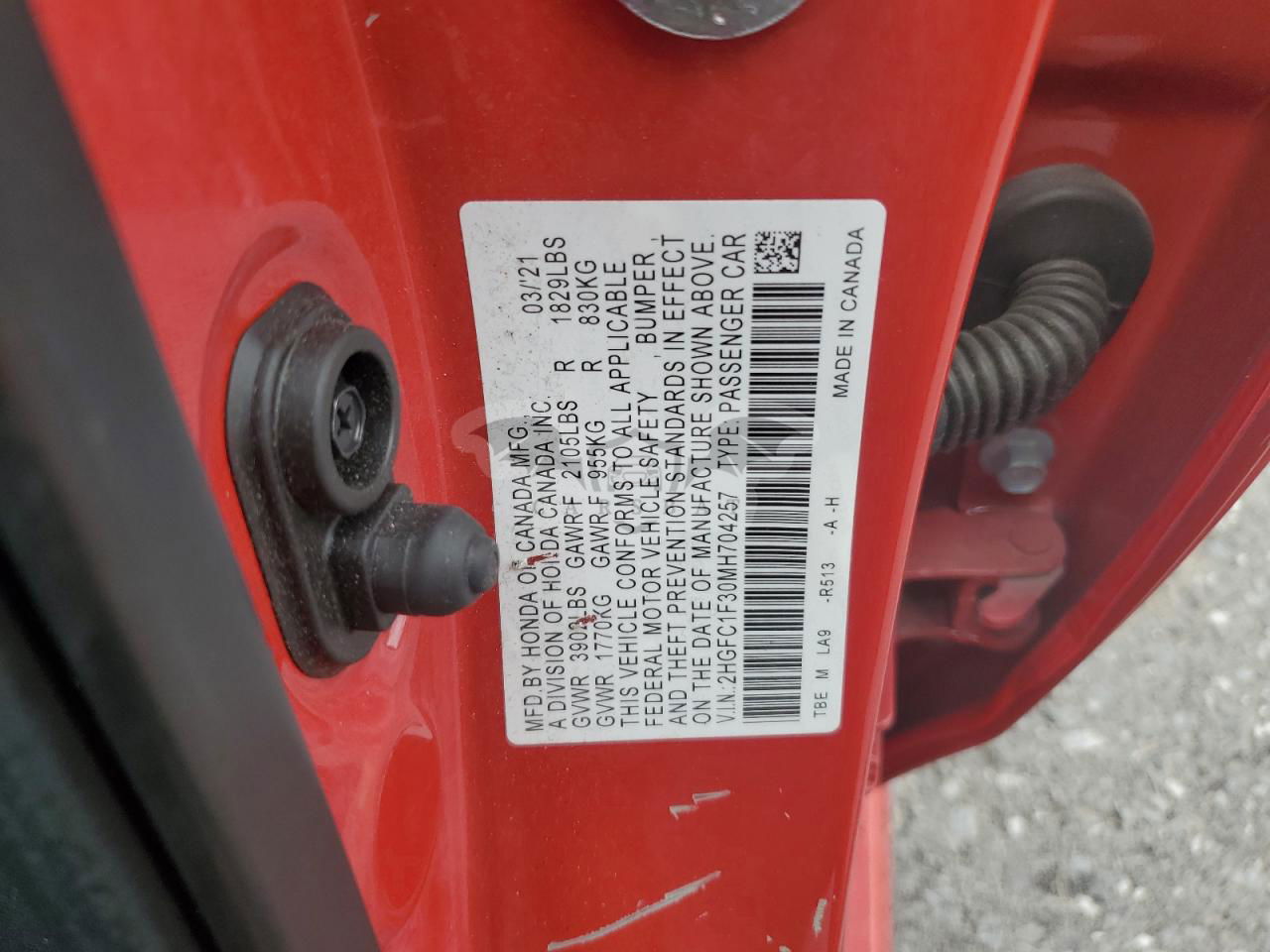 • VIN: 2HGFC1F30MH704257