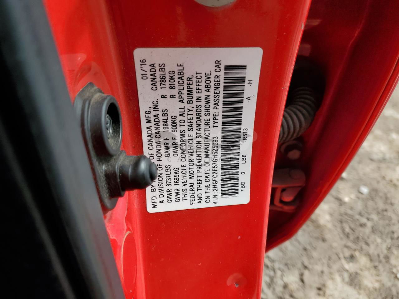 • VIN: 2HGFC2F57GH525693