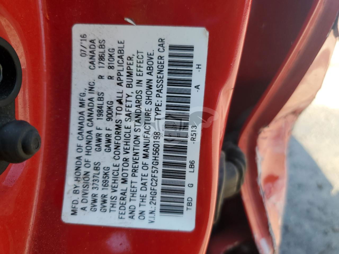 • VIN: 2HGFC2F57GH560198